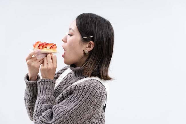 甘いお菓子をよく食べる人はプラークができやすいため、できるだけ甘いものを控えてください。甘いものを食べてはいけないわけではありませんが、甘いお菓子や糖分が含まれるものを食べたあとは、歯磨きするとよいでしょう。