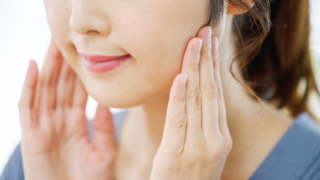 筋肉のマッサージを行い、顎周辺の筋肉をほぐすことも顎関節症の予防につながります。こめかみあたりにある側頭筋や耳と頬の間にある咬筋を指で円を描くように動かすと、凝り固まった筋肉がほぐれるでしょう。