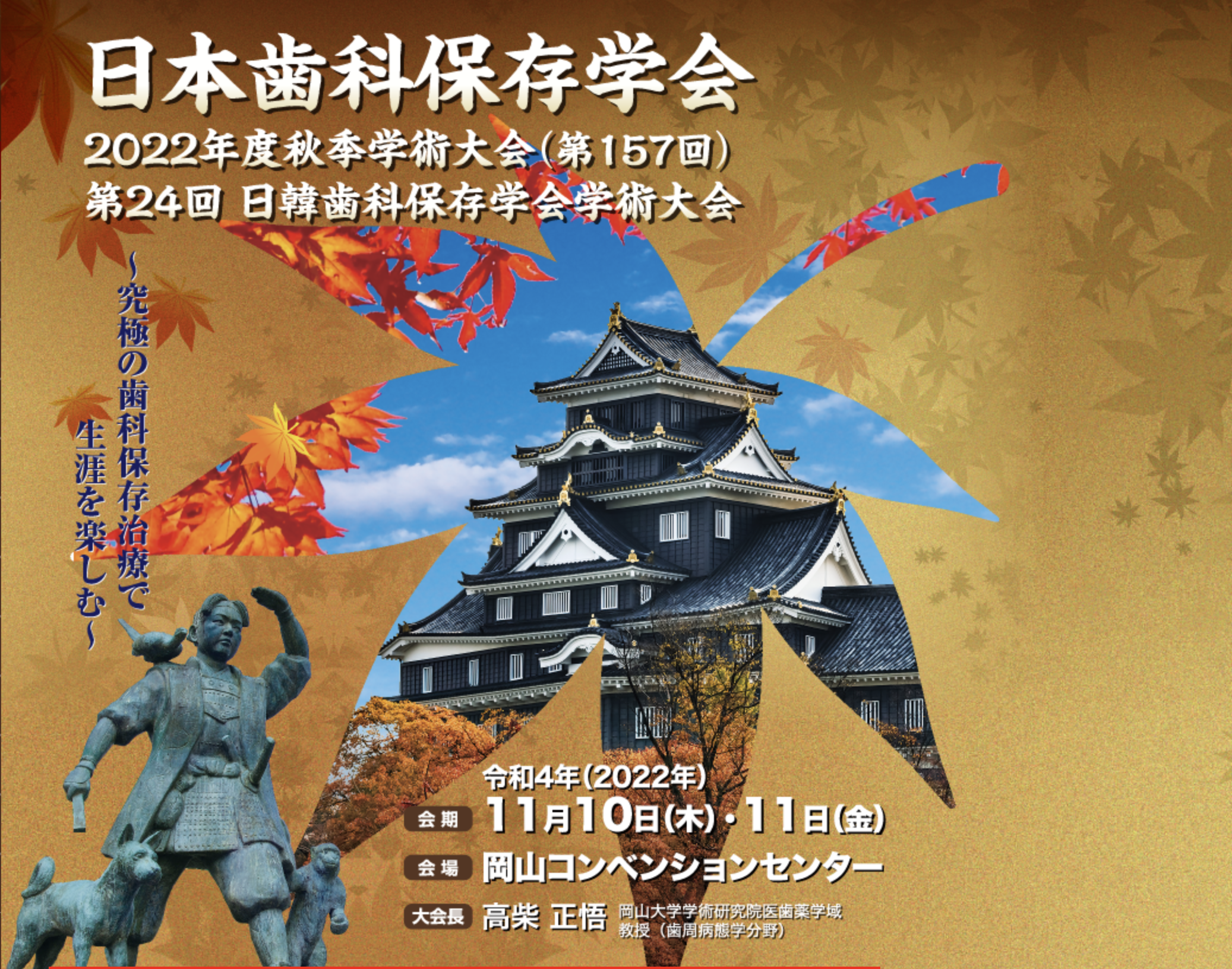 先日の木曜日・金曜日にお休みを頂いて「日本歯科保存学会 2022年度秋期学術大会(第157回) 第24回日韓歯科保存学会学術大会」に参加してきました。久々の現地開催での学会で、岡山まで行ってきました。好きな時間に好きな講演を聞くことができるWeb開催も良かったですが、やはり現地に行ってリアルタイムで講演を聞くほうが私としては好きだなと改めて実感しました!大学時代の医局のメンバーにも会うことができ、お互いの近況報告や昔話に花を咲かせたり、治療に関しての考え方・器具・材料についてのディスカッションをしたりしました。