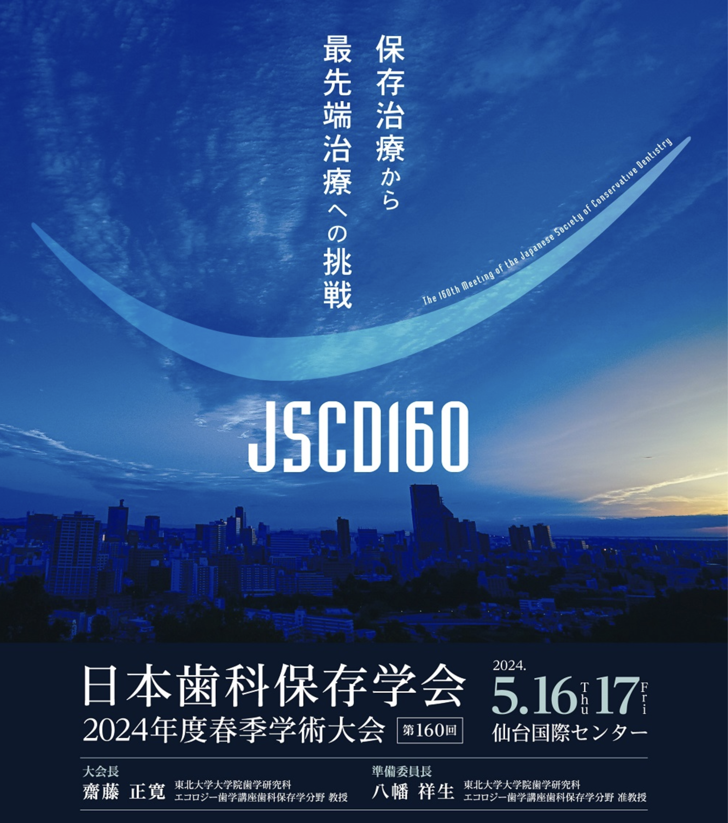 仙台で行われた日本歯科保存学会 2024年度春季学術大会(第160回)に参加してきました。今回の学会のメインテーマは「保存治療から最先端治療への挑戦」で、口腔健康と全身健康の関連性に焦点を当てたものでした。大会長挨拶でも述べられていましたが、国民皆歯科検診の報道依頼、歯科治療への注目が高まっており、同時に歯科医師として果たすべき役割も大きくなっていると感じております。今回の学術大会では、最先端治療をキーワードとしていたので情報収集も兼ねて参加させていただきました。